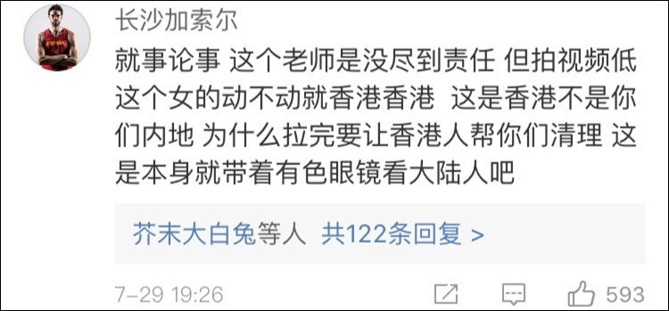 7月30日报道,上周末,内地游客在香港又引发了一起争议事件。