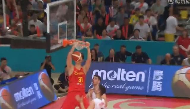 而且,王哲林在冲抢前场篮板球方面也是非常努力。此役,中国男篮一度在场上排出了3后卫的阵容,因此球队的攻击速度是非常快的。但是,身为内线球员的王哲林并没有因此放慢自己的脚步,他反而在一些转换进攻之中抓住了前场篮板球,并由此在篮下完成了二次进攻。