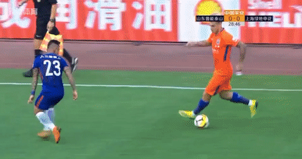 上半场比赛前二十分钟,鲁能的进攻多数集中在吴兴涵所在的左路,可惜吴兴涵多次处理球并不得当,浪费了几次机会以后,鲁能的进攻中心再次来到了金敬道所在的右路。上半场比赛进行到28分钟左右,塔、格、金三个人第一次打出有威胁的进攻配合。而在此之前金敬道的抢断已经多次为队友创造机会。