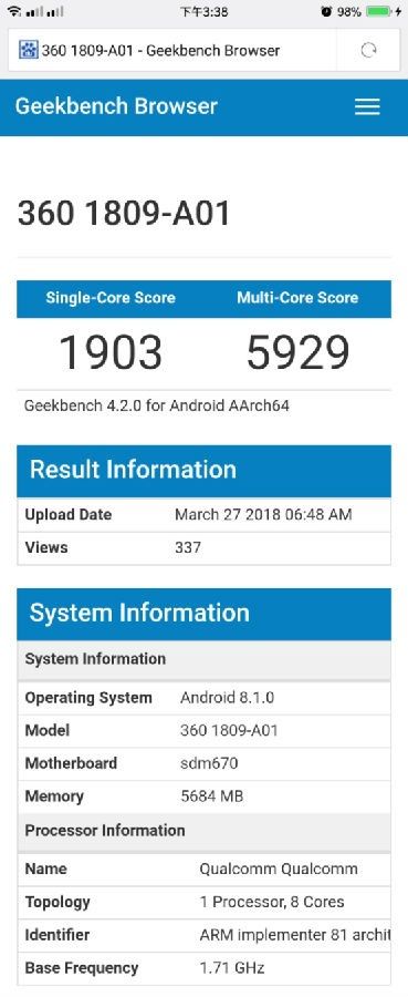 N7 Pro整体性能方面将比N7更强,至于其具体配置,由于360手机官方保密原因,目前还不得而知,但由于此前跑分成绩的曝光,猜测360手机N7 Pro可能搭载高通骁龙710处理器,全系配备6GB大运存和预装Android 8.1.0系统,至于单核和多核的跑分成绩则与小米8SE等机型处于同一水准。360手机N7 Pro还传闻会采用与坚果R1相似的横排双摄设计。从过去曝光的设计图来看,该机仍旧采用是micro-USB接口,电池方面,之前传言的6000mAh的可能性不大,应该在4000mAh和4500mAh之间。支持18W快充,有可能
