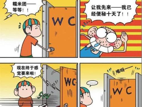 糯米团刚要打开厕所的门,呆头飞速的跑了过来嘴里还喊着“糯米团,等等,我先来我先来,我已经便秘十多天了,终于有了感觉,拜托拜托让我先进去。”糯米团默然地站在厕所门外,听着呆头哼着小曲开心地在厕所释放。