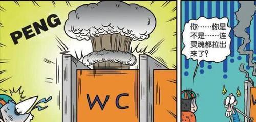 这时只见“砰”的一声,一团蘑菇样的黑云突然出现,好像要把天花板炸出糯米团个洞来。糯米团瞪大了眼睛不敢相信的看着突然发生的一切,震惊地眼球都要掉出来了。这时呆头虚弱地扶着厕所的门出来了,好像瞬间瘦了几十斤一样。糯米团弱弱的问“你这是憋的太久了,把灵魂都拉出来了吗?”