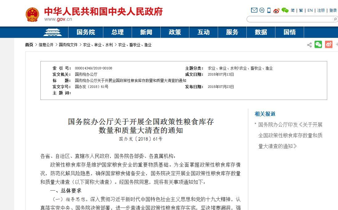 7月23日,国务院办公厅发布《关于开展全国政策性粮食库存数量和质量大清查的通知》(下称“通知”),之后出现了全国多地粮库失火的传言,包括黑龙江林甸、河南焦作和江西贵溪的中央储备粮直属库。另外,一张吉林省粮食局的火灾事故情况通报截图也出现在网络上。