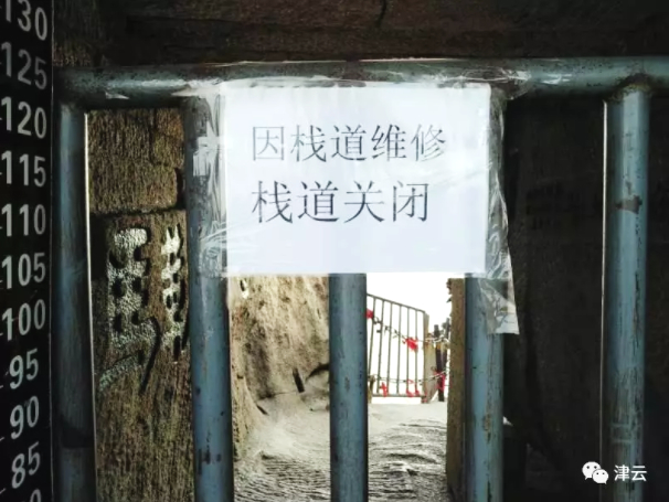 在长空栈道入口,贴着醒目的因维修暂停开放的通知,几位维修工人刚刚检修完毕,他们告诉记者只是例行维护。此外津云新闻记者也从华山景区管委会获悉,目前长空栈道还处于封闭状态,何时恢复开放还没有明确计划。