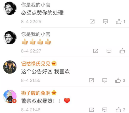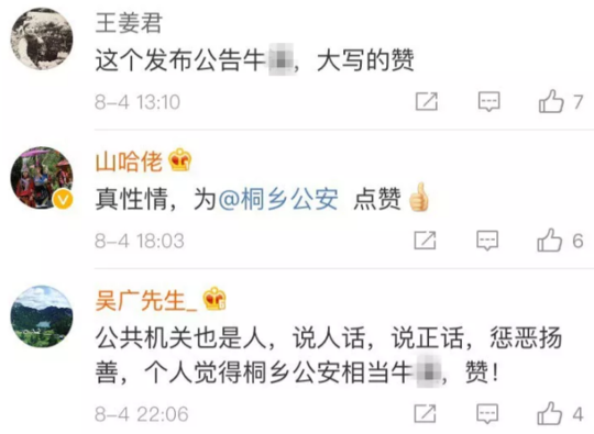 有人觉得,通报虽然用了看似"不规范"的表达方式,但却恰恰体现了"真性情",是在更接地气地跟民众交流。"公安机关也是人","说人话,说正话"有何不可。
