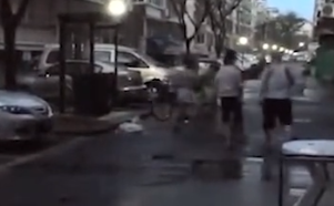 此时,烧烤店老板儿子、女店员丈夫从店内冲出,对陈兴全一阵掌掴脚踹。