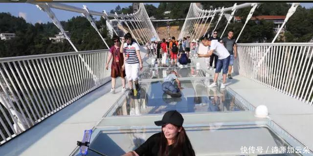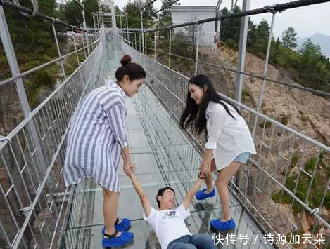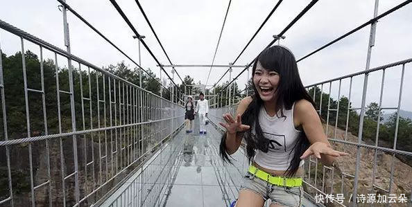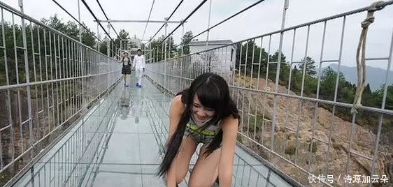如果说要看恐怖片来追求刺激,还不如来体验一把悬崖玻璃桥。上面这位穿裙子的