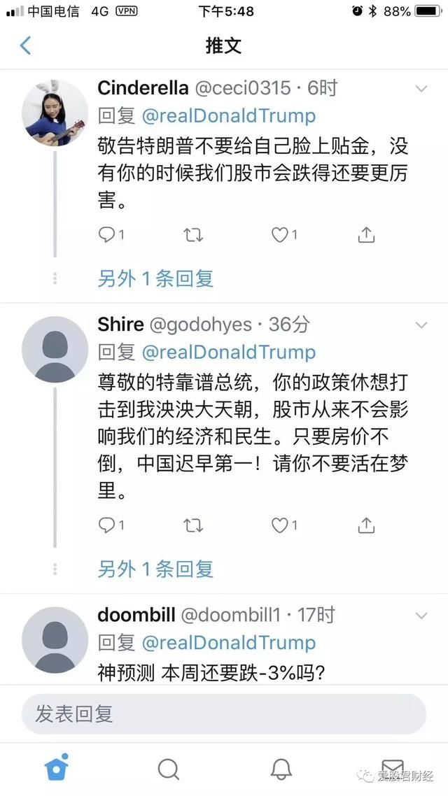 结果,特朗普的推特火了,中国股民纷纷跑去留言,但这次,却集体当起了“汉奸”: