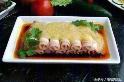 4:将冷却的五花肉切成均匀的薄片,一片一片的卷成卷