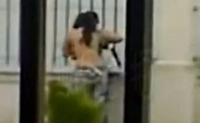 没多久女子将衣物穿回,但马上又和男友发生剧烈争吵,女子再次将衣物脱下,坐在旁边的草地上大声叫骂并且伴随哭喊声,男子始终靠着墙边,几乎不予理会。