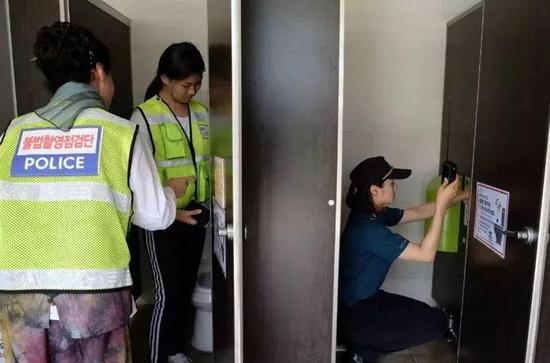 告诉你,这是韩国庆尚南道的警察在用特殊仪器扫描公共卫生间的隔档,看有没有针孔摄像头。