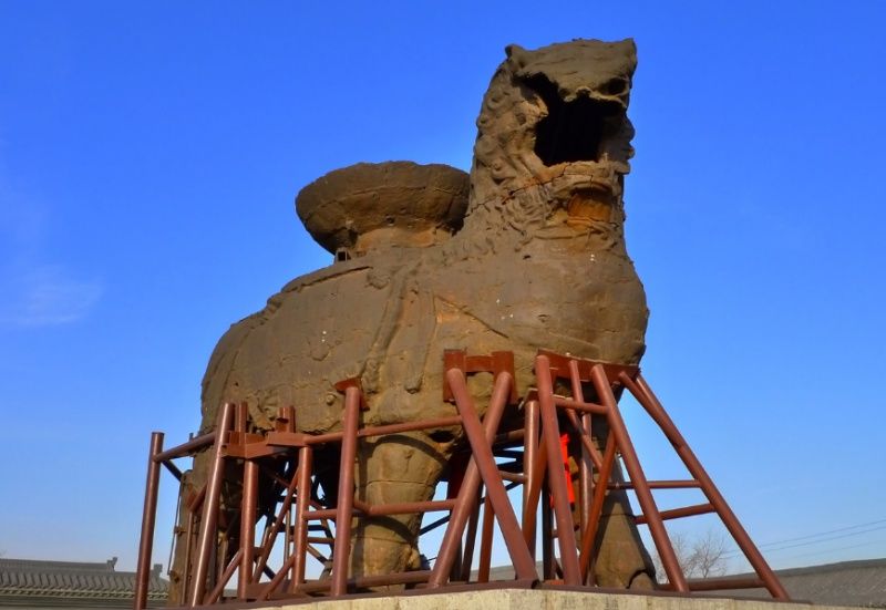 自1950到2000年短短的50年间,沧州铁狮子历经数次的专家保护维修,结果让经历千年无损的铁狮子如今面临解体。沧州铁狮子可真是“中国最悲催的文物”,抢救不成,反而被害。没有办法,当地政府只能再建一个新的铁狮子来延续其雄姿!(上图为新建的沧州铁狮子)