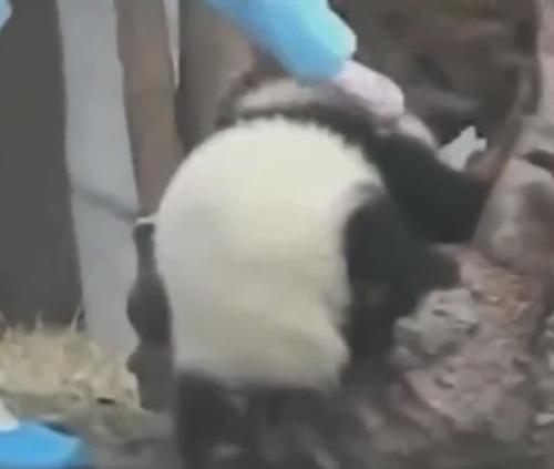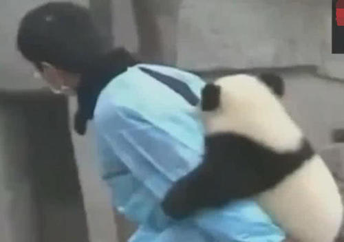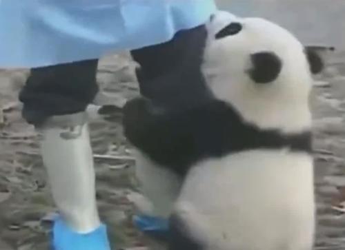 奶爸为了“引诱”熊猫多做运动,经常的牺牲自己做诱饵