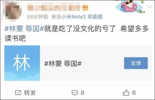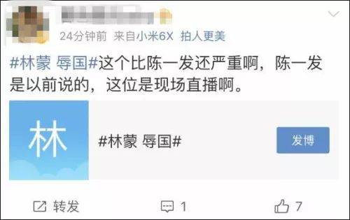 现在微博已经有了#林蒙 辱国#的标签,事情很可能会越闹越大。