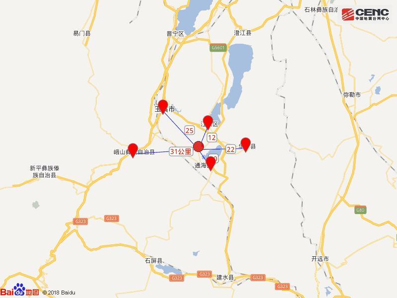 震中距通海县10公里、距江川区12公里、距华宁县22公里、距红塔区25公里、距峨山彝族自治县31公里,距玉溪市24公里,距昆明市95公里。