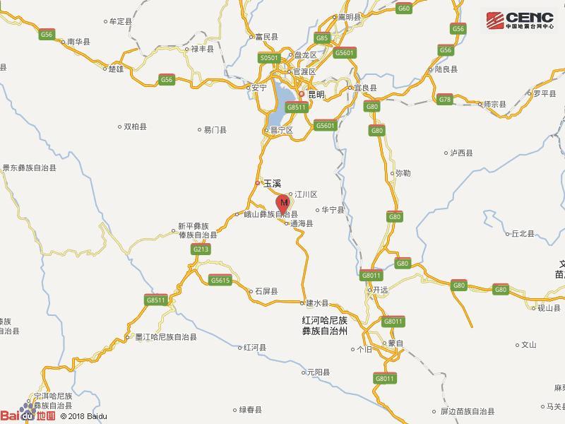 据中国地震台网正式测定,8月14日3时50分在云南玉溪市通海县发生5.0级地震,震源深度6千米,震中位于北纬24.19度,东经102.71度。震中海拔约2003米。