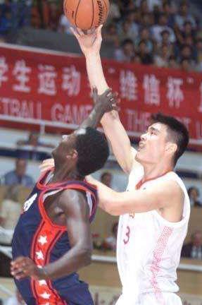 而在终场前中国队仅领先对手一分,不过美国队拥有绝杀的球权。不过在这关键时刻,姚明挺身而出,奋力帽掉对手的上篮,从而帮助中国队以83-82一分险胜对手,从而终结美国队在世界范围内的46连胜纪录。