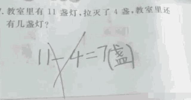 比如说这一道题。问题是什么?我给大家念一下。说一个屋子中有11盏灯。现在我灭掉了四盏,问这个屋子里还几个灯。很多人可能会不假思索的答道。当然是七盏了,这么简单的算术题,还用回答吗?还用列式计算吗?那该是有多蠢。很遗憾,如果你要是这么想的话,那么很遗憾你连小学生的题都答错。答案当然是还是十一盏。没有错,这就是脑筋急转弯儿。而后面所有的定论都是在误导你。你是不是也被骗了?
