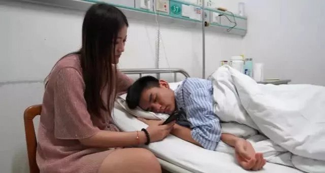 魏尚子家住偏僻的淅川县盛湾镇蚂蚁村,三代单传的农村人对他这棵独苗的疼爱程度不言而喻。这几年,爷爷、太奶奶先后离去,家里欠下了不少外债,为了还债父母一直在外地打工,去年家里人借了亲戚家的钱,付了首付款才在淅川县城给魏尚子买下了一套小产权房,给他举办了结婚仪式。原本以为每月 2000 多的月供有一家人共同努力,用不了几年就可以还清,却没想到半年时间家里就发生了天塌地陷的大事。图为今年正月才结婚的妻子周俊雅在病床边陪护着魏尚子。