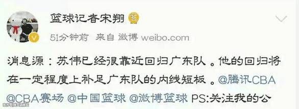 近日,据CBA名记篮球记者宋翔爆料,青岛男篮内线球员苏伟已经无限接近回归广东男篮,不日广东男篮将进行官方的宣布。据悉,广东队为来重新召回苏伟付出了惨痛代价,除了将用高尚的培养费,加上赵戌宏和曾繁日两名潜力年轻内线,还添上了替补后卫周湛东!用4将换1将,苏伟将是广东宏远男篮冲击第九冠的重要拼图。