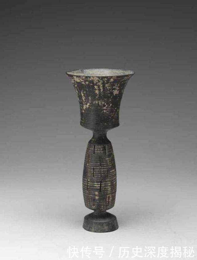 出土于距离今天5000年的龙山文化遗址,现藏于我国台湾省台北故宫。质地为磨光黑陶,有轮制痕迹,系典型的山东龙山文化遗物。龙山文化时,发展轮制拉胚技术,可制作很薄的、甚至还可镂雕图案的陶器,又可称为“蛋壳陶”。此无价之宝在陶瓷界非常著名。