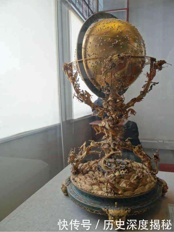 据统计,北京故宫博物院收藏的文物多达1052600多件,占全中国文物总数的六分之一;这件国家一级文物就藏于故宫。天球仪的支架成高脚酒杯状,用9条不同姿态的行龙支撑球体,上为4条头上尾下的腾龙擎住球体,下为头下尾上的倒海翻江的降龙,是古代用于观测天体运行的仪器。