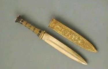 这把黄金匕首出土于世界著名的图坦卡蒙墓。这座古墓引起了很大的轰动,因为墓中出土了大量的黄金制品,陪葬品是非常奢侈的。这座古墓除了奢侈的陪葬品之外,还有一条可怕的诅咒,墓中写着“凡是打扰法老的人,都将受到沙漠之火的折磨!”随后参与研究工作人员都接二连三的意外死去,这座古墓也在全世界都出名了。