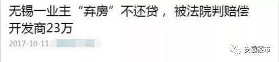 合肥目前还很稳定,但江苏无锡就出现了一起业主“弃房”不还贷,被法院判赔偿开发商23万的案例。