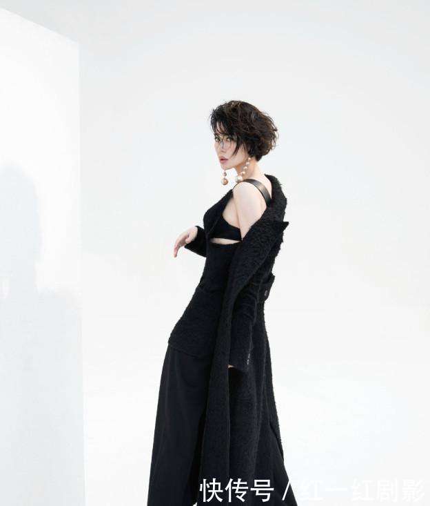 余男的短发造型给人强烈的视觉冲击,很有魅惑感。她身穿一袭黑色的衣装,将神秘性感的女人魅力诠释得酣畅淋漓,一对大珍珠耳环让她更美丽迷人!