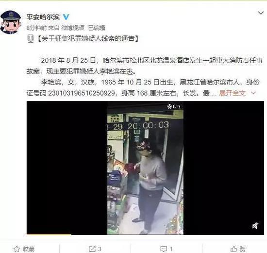 [分享]哈尔滨酒店火灾嫌疑人李艳滨已被抓获