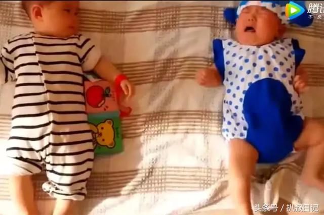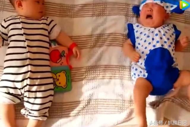 这天,爸爸妈妈将龙凤胎宝宝放在床上玩,一开始,两个宝宝都特别乖巧,哥哥和妹妹两个人并排躺着,都在蹬着小腿儿玩。过了一会儿,也不知道妹妹是有些无聊了,还是有其它令她不高兴的情况发生,妹妹一下子就大哭起来。