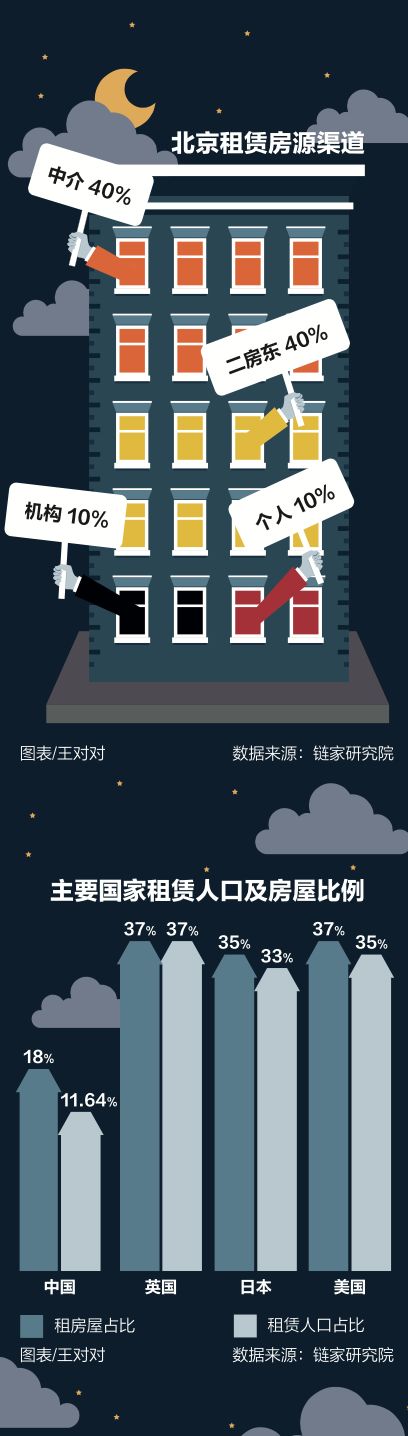 杨现领则判断,未来的格局会是,50%为专业机构化管理市场,40%是中介、二房东和业主等常规的租赁市场,剩下10%是房屋分享。李海波的室友因为这次涨价,搬离了他们的房子,在附近找了一家离地铁步行25分钟的房子,仍然找的是自如。刚来北京时,他找过直租的房东,在交接时总是因为冰箱的破旧和墙面的剥落跟房东发生分歧,最后,给房东的5000元押金也没有要回。"还是希望寻找中介公司。"