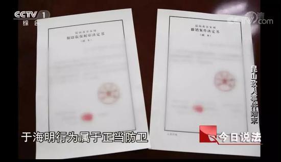 下午17:00,昆山警方宣告,于海明行为属于正当防卫,无罪释放。