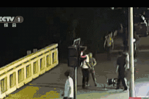 这时视频中出现了一个黑衣人,他是于海明的同事小柯。由于事发太过突然,小柯一直在旁边拉劝。悲剧发生后,小柯第一时间报警。