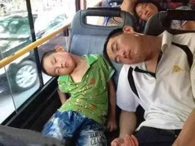 这位宝爸和宝宝竟然在公交车上就睡着了,肯定是太累了,关键你们俩个的睡姿,怎么一模一样,是不是特意练过的啊?
