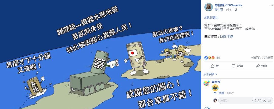 不仅台媒对蔡英文的态度差异有所察觉,大量岛内网友也对当局一贯做法表露微词:“日本人就即刻救援,台湾人则要先泡几天水。”“(台湾)中南部的灾民果然远远不如日本灾民啊!”