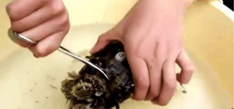 小可决定将小海龟带回酒店清理。她买来一些酒精和消毒的工具,准备为小海龟清理寄生物。在进行充分消毒后,小可用医用剪刀和镊子将那些寄生物清理干净,在经历几十分钟后,终于清理好了。