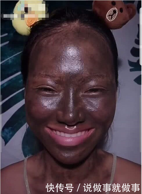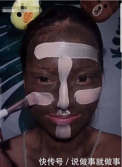 很明显脸上故意涂的黑色的黏糊糊的东西,不是一般人能欣赏的,但是接下来她的蜕变让很多人都震惊,用一个化妆刷把脸上刷几下,大家可以看到遇到的地方已经变白了,并且黑白还很明显,之后小姐姐又刷了几下将整个脸都刷白了,当她把整张脸都涂白的时候,我想有强迫症的小伙伴一定想上去把她脸上的东西刮下来吧!