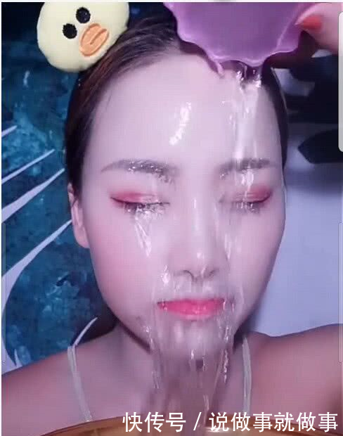 接着小姐姐开始修饰自己的眉毛和眼皮部分了,她涂上了红色的眼影,最后把嘴巴也涂上了口红,小编怎么感觉她在宣传自己的化妆品呢,用一盆水泼上去妆都不会花,结果实在是令人震惊!