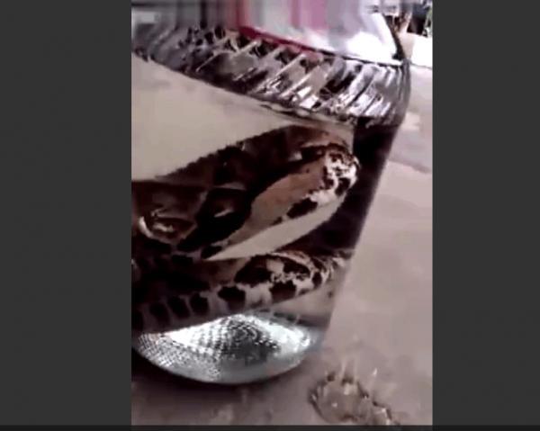 近日,一位贵州的男子在山里抓到了一条五斤重的毒蛇拿回去泡酒,毒蛇被盖入瓶子后痛苦挣扎, 场面骇人!