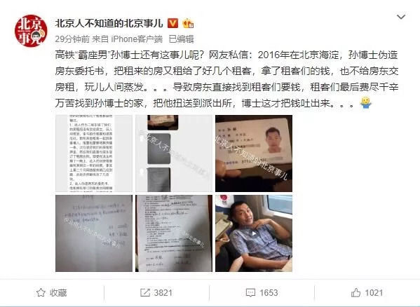 这次“霸坐男”的视频,充分暴露出他的素质,可见他以前伪造房东委托书骗取房租等黑历史是真的,也可见他未来会有怎样的表现。