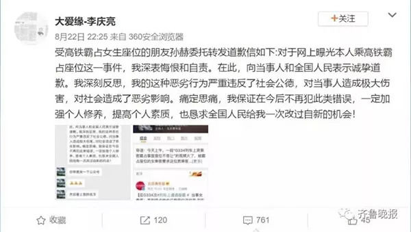 而这样无教养的人据说还是博士,也可见学历和一个人的素养关系不大,教育应更注重人文素养的培养。但更重要地是,此次“坐霸男”公认挑衅网友,反映了网络舆论有时无力。