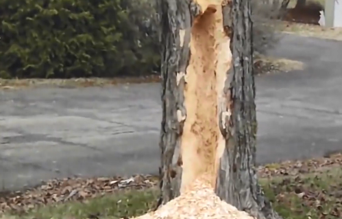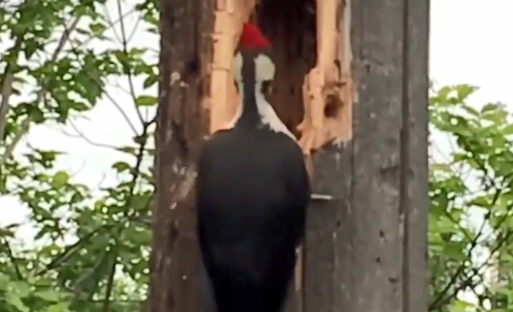 结果再次跑出门外时,女子不厚道的笑了,顿时就有种肚子疼的感觉,这啄木鸟哪里是在抓虫子,分明就是在砍树,整个树干都快被挖空了,树底还有一堆木屑,这棵大树也是可怜了,女子无奈上前把啄木鸟赶走了,毕竟树都掏成这样了,在掏下去估计要掏死了,你们说呢?