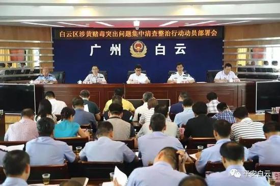 行动当天上午,白云区召开了涉“黄赌毒”突出问题集中清查整治行动动员部署会议。
