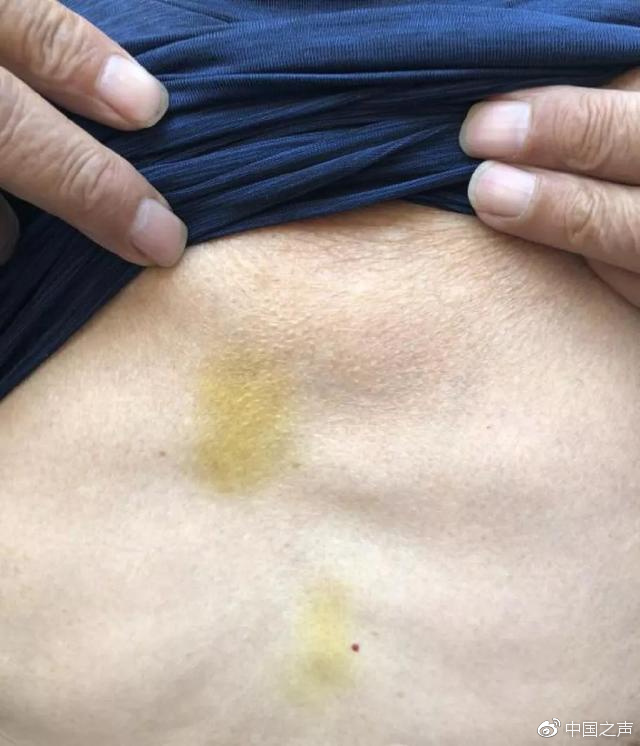 曾先生父亲被攻击后的瘀伤(事发三天后拍摄淤血痕迹未消除)
