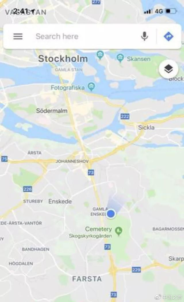 被遗弃坟地的卫星定位,能看到离斯德哥尔摩市区很远