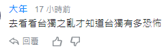 还有留言称,“民心向背,一目了然”“去看看‘台独’之乱才知道‘台独’有多恐怖”。有网民甚至直呼,“欢迎解放军把绿营通通正法。”