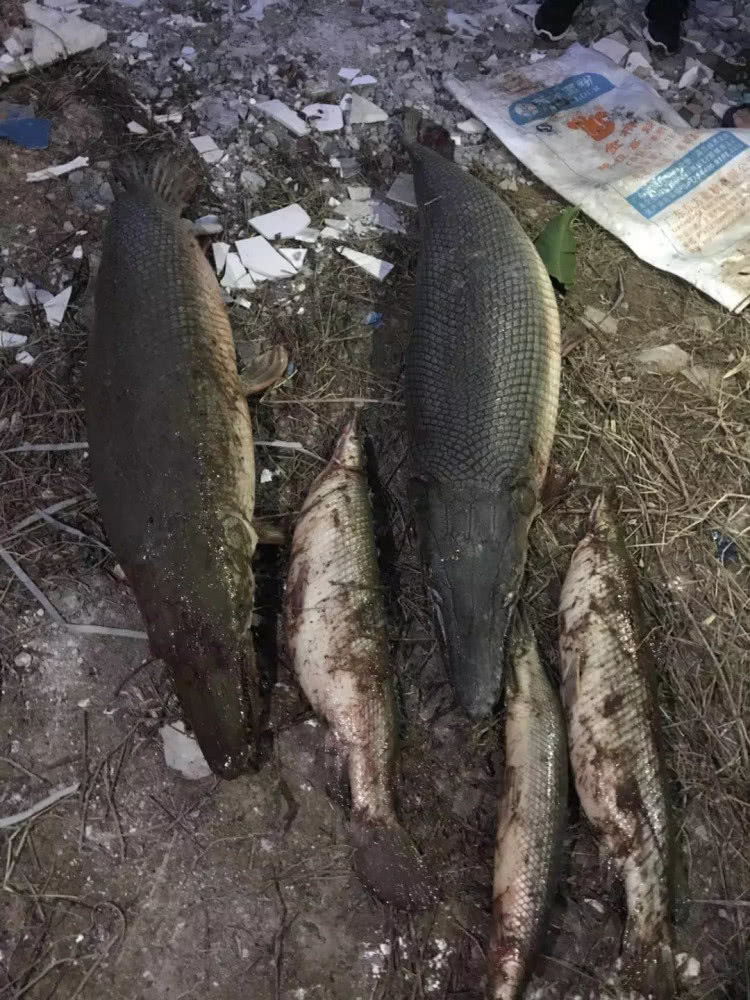 最后小区物管把水放完,在池塘里一共抓到五条雀鳝。