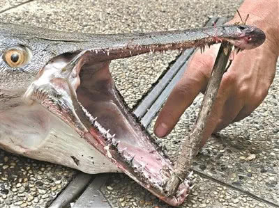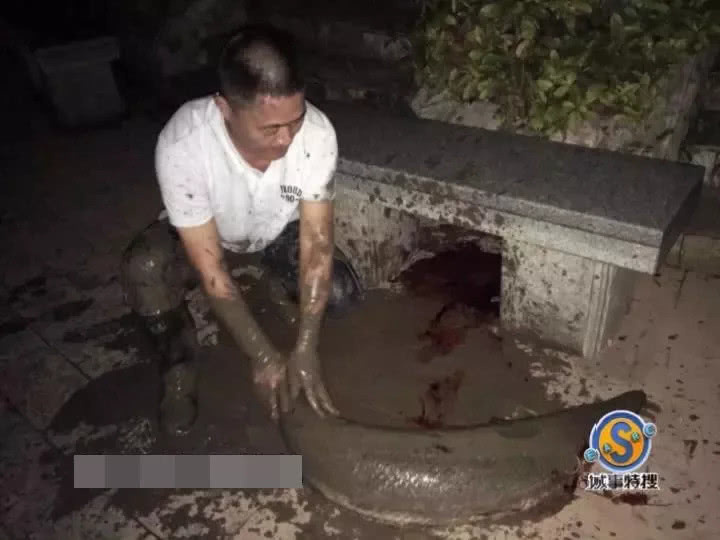 虽然捕鱼处只离岸两三米,但两人硬是花了15分钟才到达岸边。上岸时,两人全身上下都布满淤泥,食指和中指都被“水怪”尖利的牙齿划出好几处小伤口。“水怪”也负了伤,鱼鳃处血流不止。
