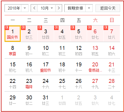 国庆假期:10月1日—7日,9月29日—30日(星期六、日)上班。